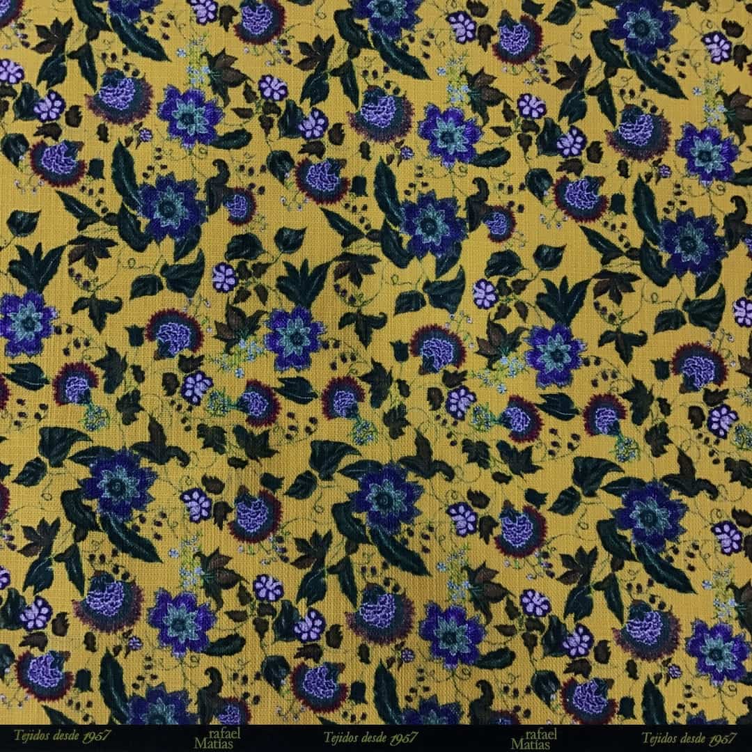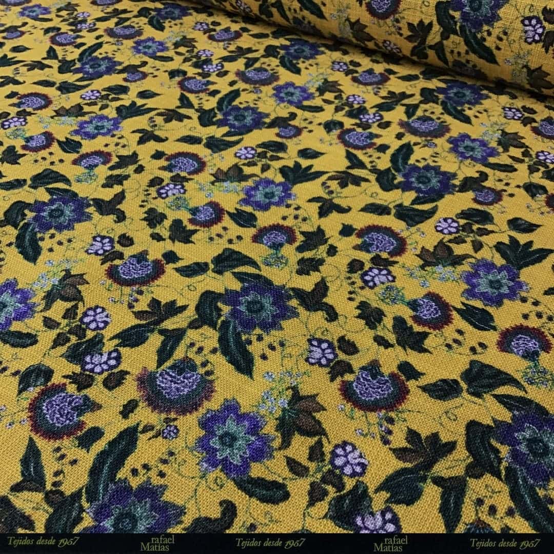 Tela Algodón Rústico Estampado Flor Oriental Amarilla