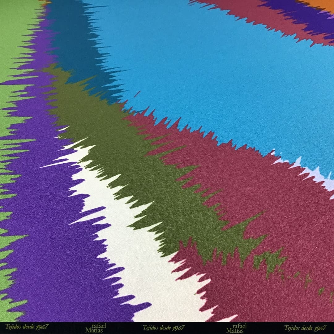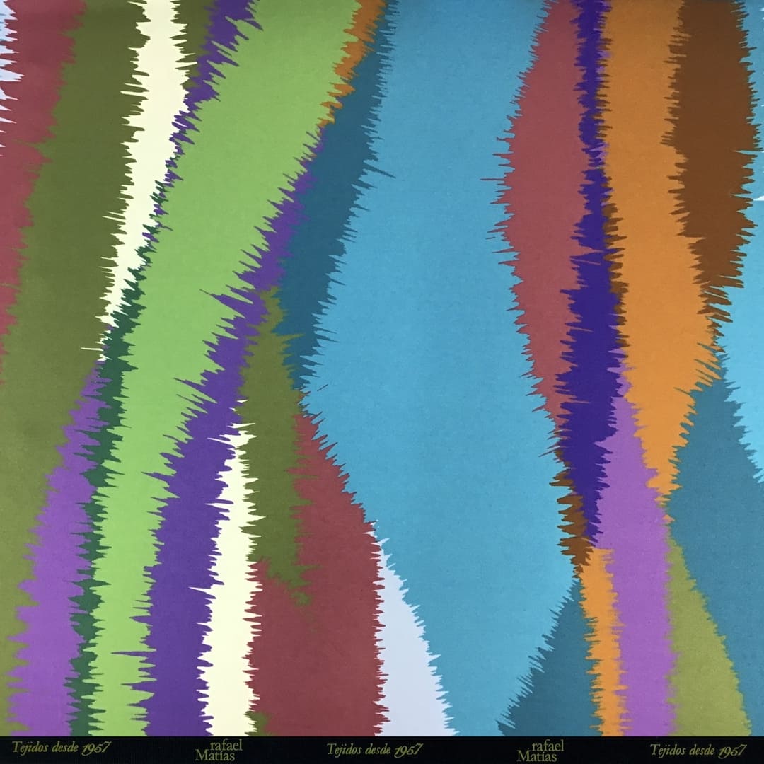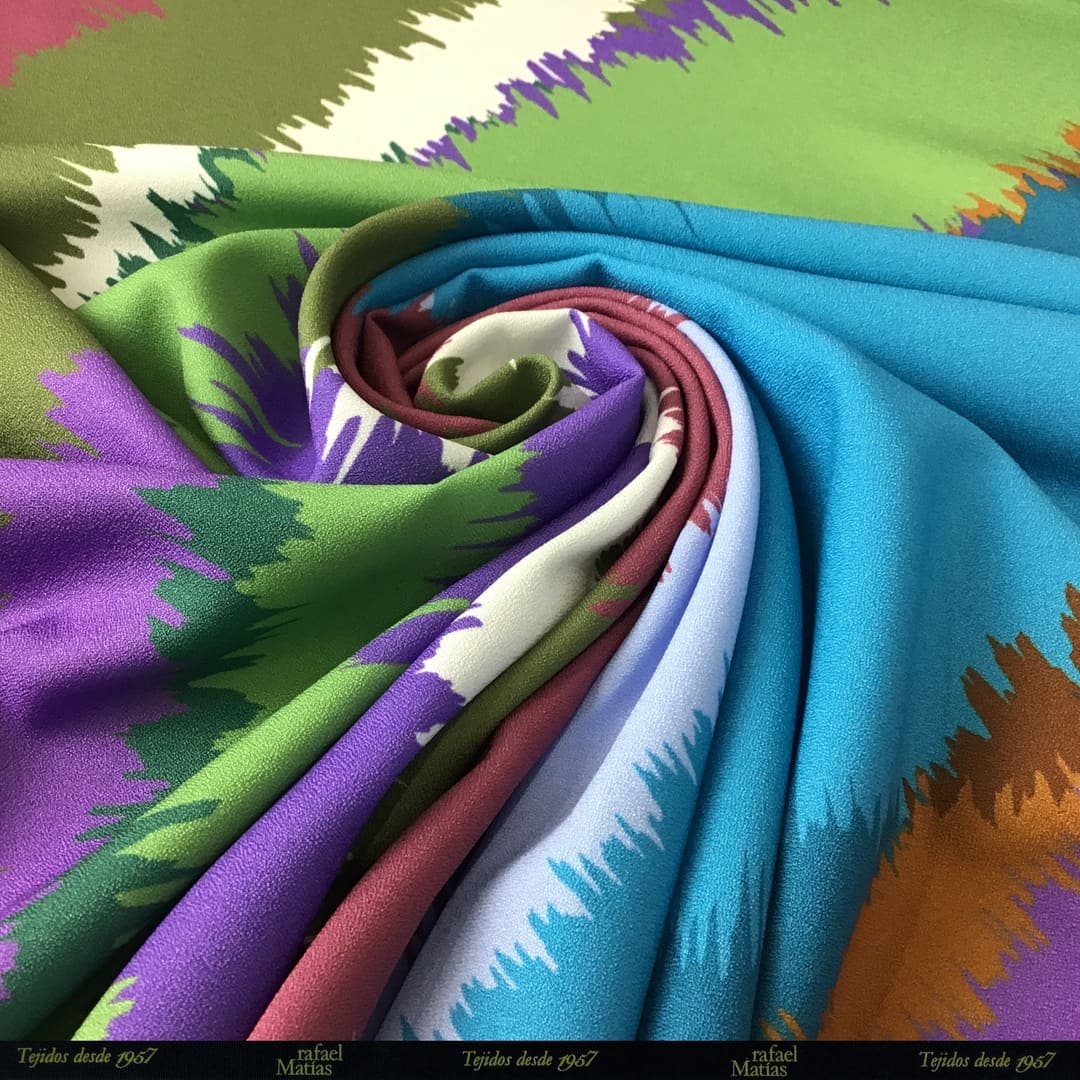 Tela Crep Sable Stretch Estampado Cintas Pavos Granas
