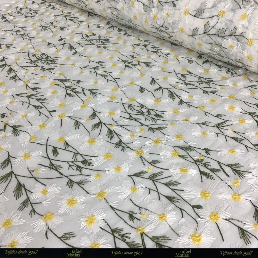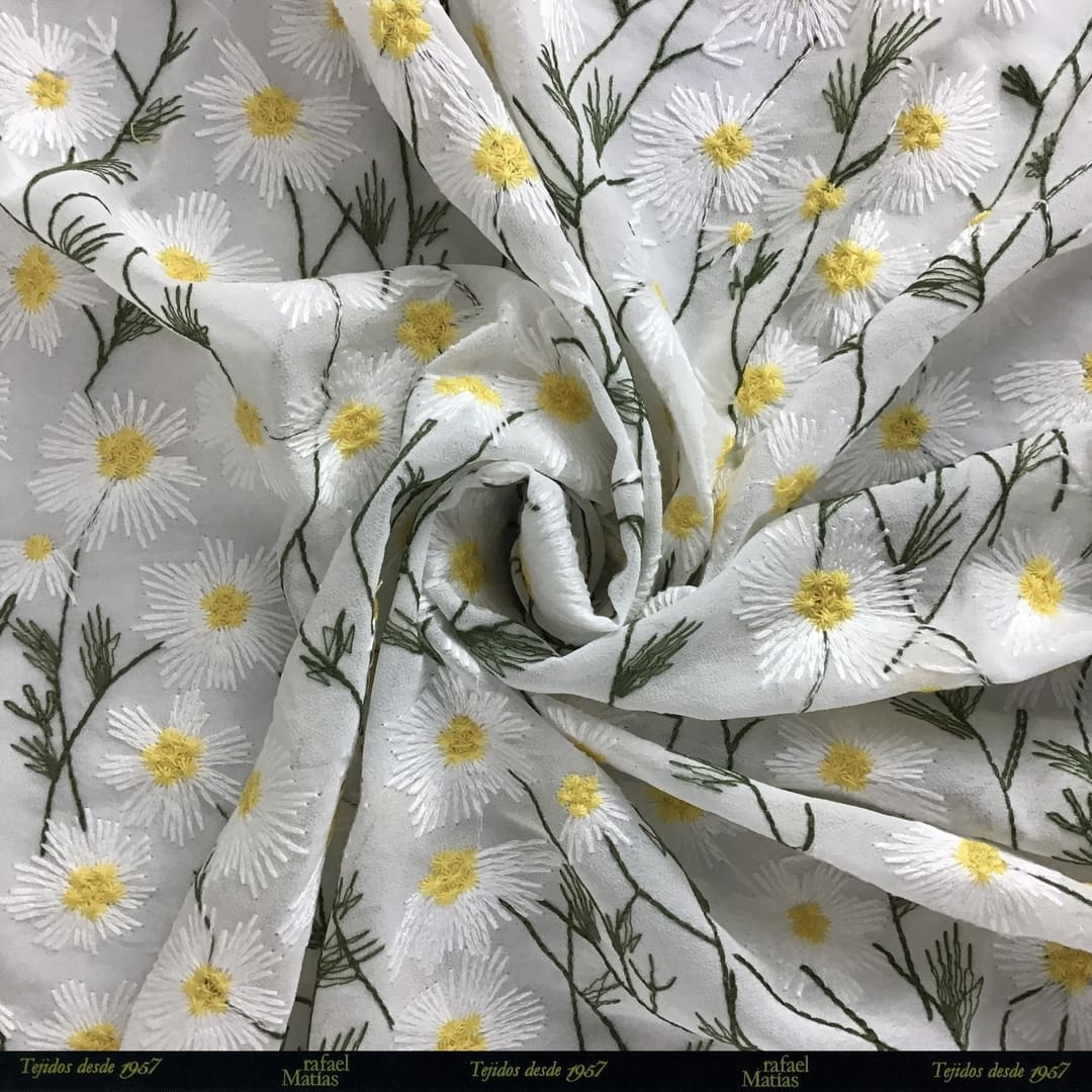 Tela Georgette Blanco Roto Bordado Margarita
