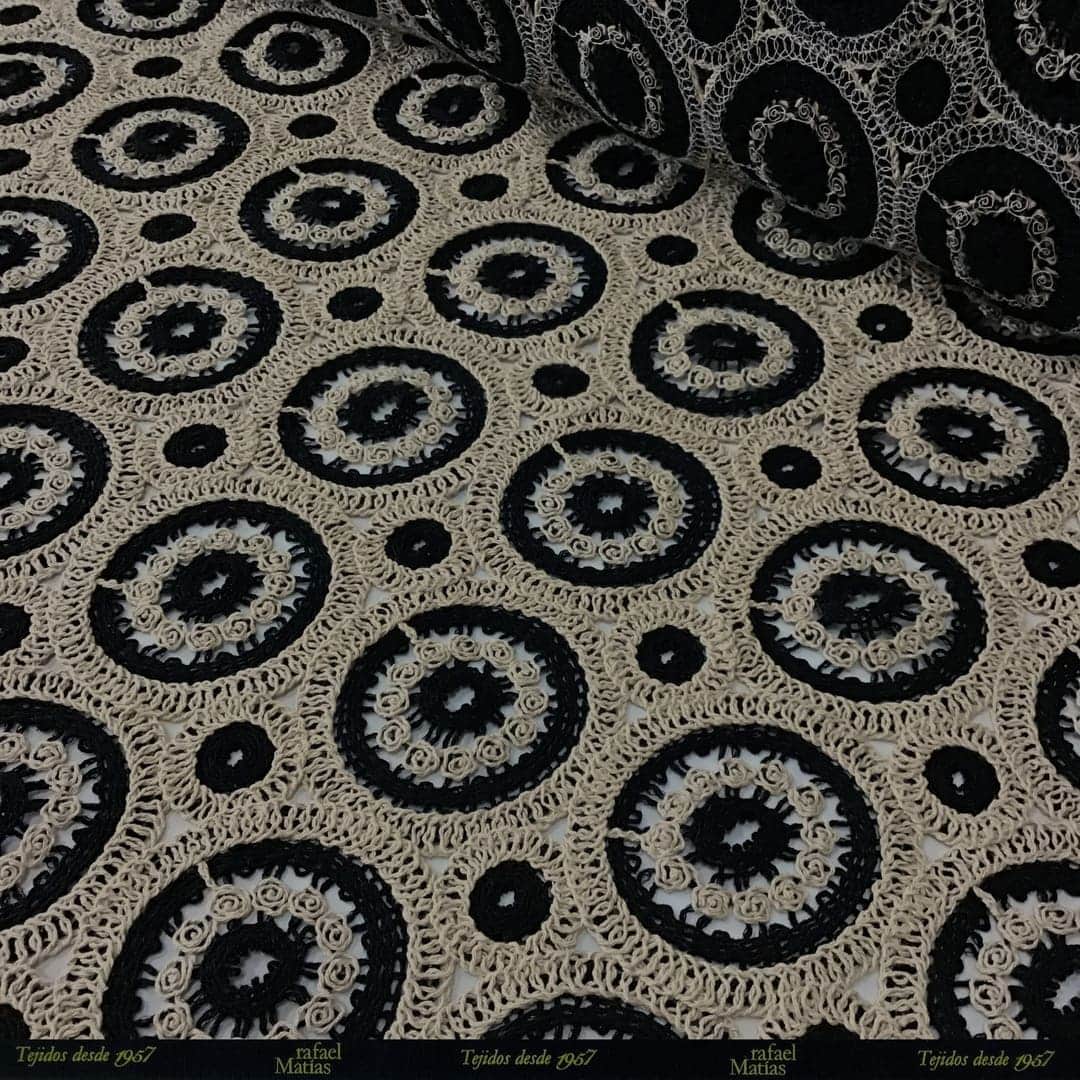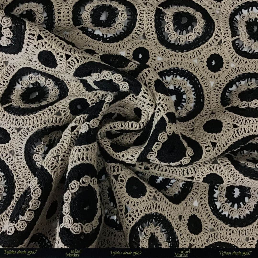 Tela Guipour Círculos Beige Negro