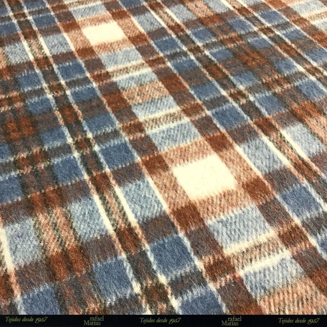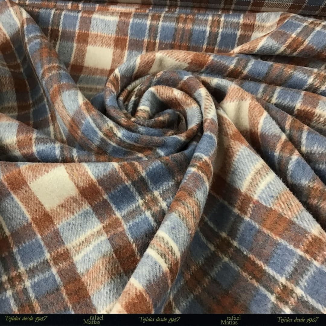 Tela Paño Cuadros Beige Azul