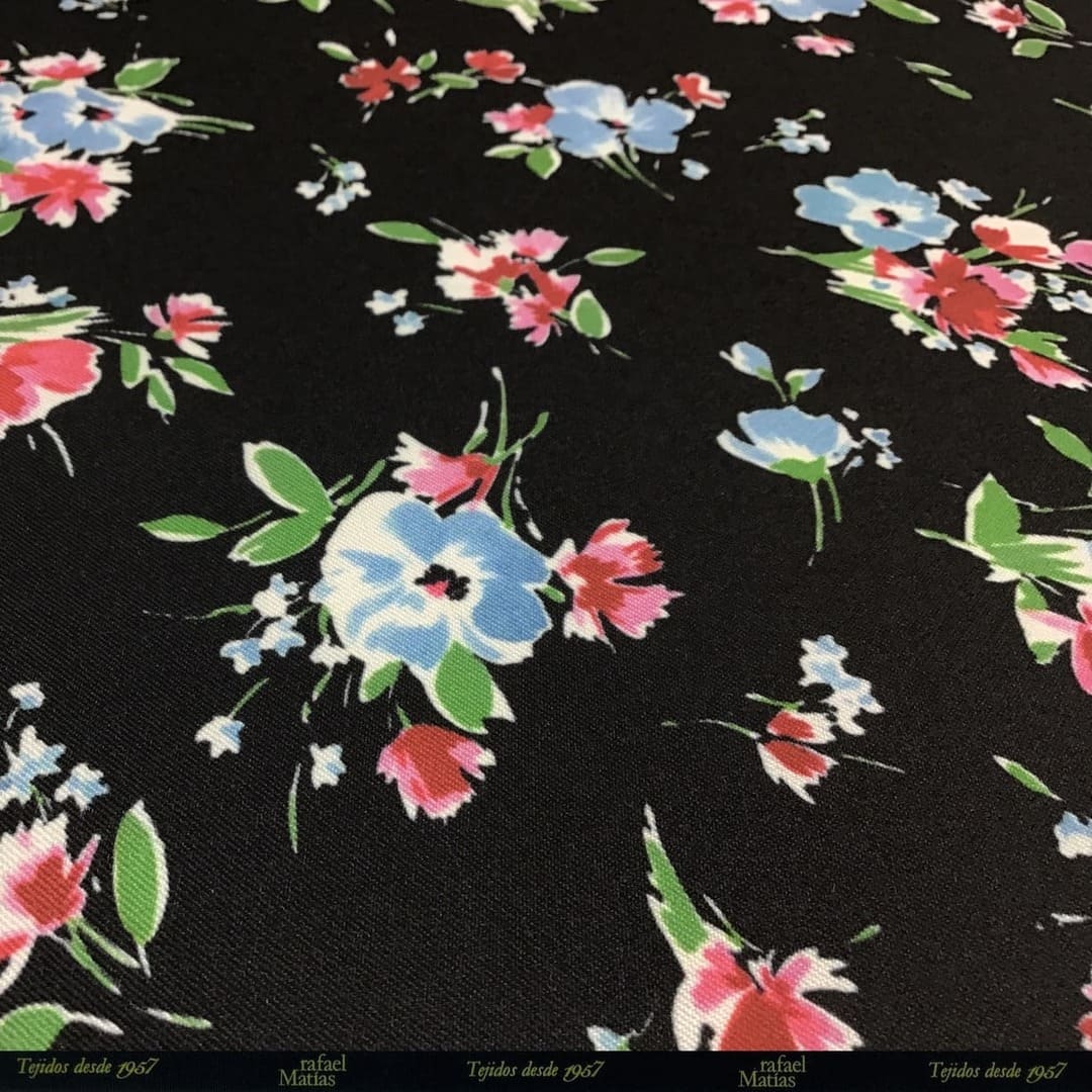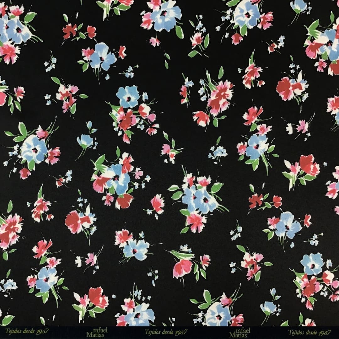 Tela Stretch Reciclado Estampado Flores en Ramillete Fondo Negro