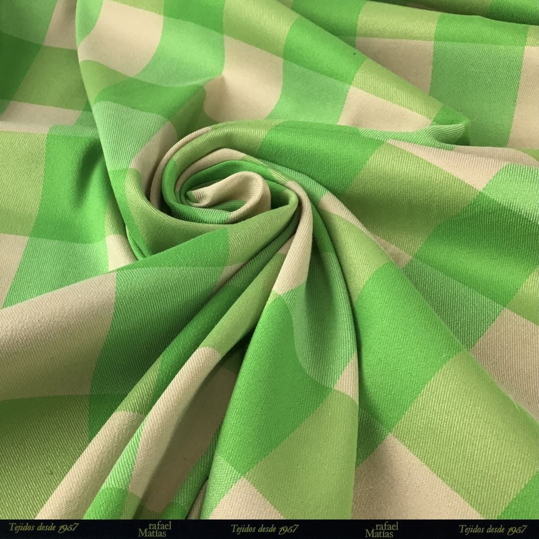 Tela Stretch Vichy Beige y Verde